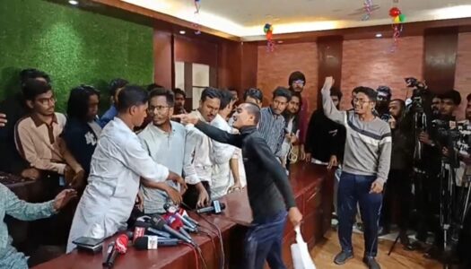 দুটি সংবাদ সম্মেলনকে কেন্দ্র করে প্রেস ক্লাব প্রাঙ্গণে উত্তেজনা সৃষ্টি হয়। উভয় পক্ষের মধ্যে বাগবিতণ্ডা এক পর্যায়ে হট্টগোল ও হাতাহাতিতে রূপ নেয়। এতে কয়েকজন আহত হওয়ার দাবি করেন উভয় পক্ষের সদস্যরা।