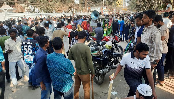 অনলাইন ডেক্স: বৈষম্যবিরোধী ছাত্র-জনতার ওপর আওয়ামী লীগের হামলার প্রতিবাদে গাজীপুরে রাজবাড়ী সড়ক অবরোধ করেছে ছাত্র-জনতা। শনিবার (৮ ফেব্রুয়ারি) দুপুরে গাজীপুর জেলা প্রশাসকের কার্যালয়ের সামনে অবস্থান নিয়ে সড়কটি অবরোধ করেন তারা। গত শুক্রবার (৭ ফেব্রুয়ারি) রাতে গাজীপুর সিটি করপোরেশনের ধীরাশ্রম এলাকায় সাবেক মুক্তিযুদ্ধ বিষয়ক মন্ত্রী আ ক মজাম্মেল হকের বাড়িতে হামলা চালায় আওয়ামী লীগের কর্মীরা। এ …