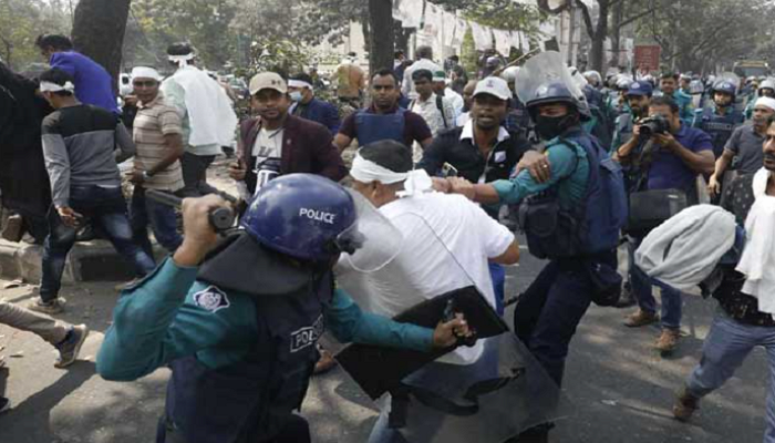 অনলাইন ডেক্স: চাকরিতে পুনর্বহালের দাবিতে সচিবালয়ের সামনে আন্দোলন করতে গিয়ে পুলিশের লাঠিচার্জের শিকার হয়েছেন চাকরিচ্যুত পুলিশ সদস্যরা। একপর্যায়ে বিক্ষোভকারীদের সঙ্গে পুলিশের সংঘর্ষ হয়, এতে আহত হয়েছেন ডিএমপির রমনা বিভাগের উপ-কমিশনার (ডিসি) মাসুদ আলম ও শাহবাগ থানার ওসি মোহাম্মদ খালিদ মনসুর। এ ঘটনায় পাঁচজনকে আটক করেছে পুলিশ। বৃহস্পতিবার (১৩ ফেব্রুয়ারি) দুপুর সাড়ে ১২টার দিকে জাতীয় প্রেস …